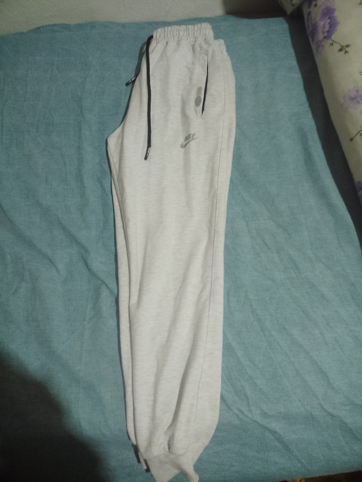 Gri renk, fermuarlı cepler ve bağcıklı bel detayına sahip rahat kesim erkek eşofman altı, yumuşak ve sıcak dokuda. Günlük sokak stili için uygundur.