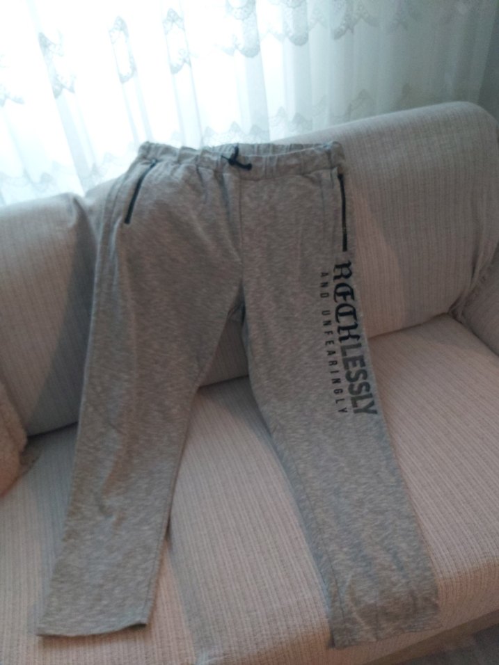 Gri renk, rahat kesim, fermuarlı cepleri ve bacakta 'RECHLESSLY' yazısı bulunan erkek eşofman altı. Yumuşak ve sıcak kumaştan, günlük kullanıma uygun. ♂️