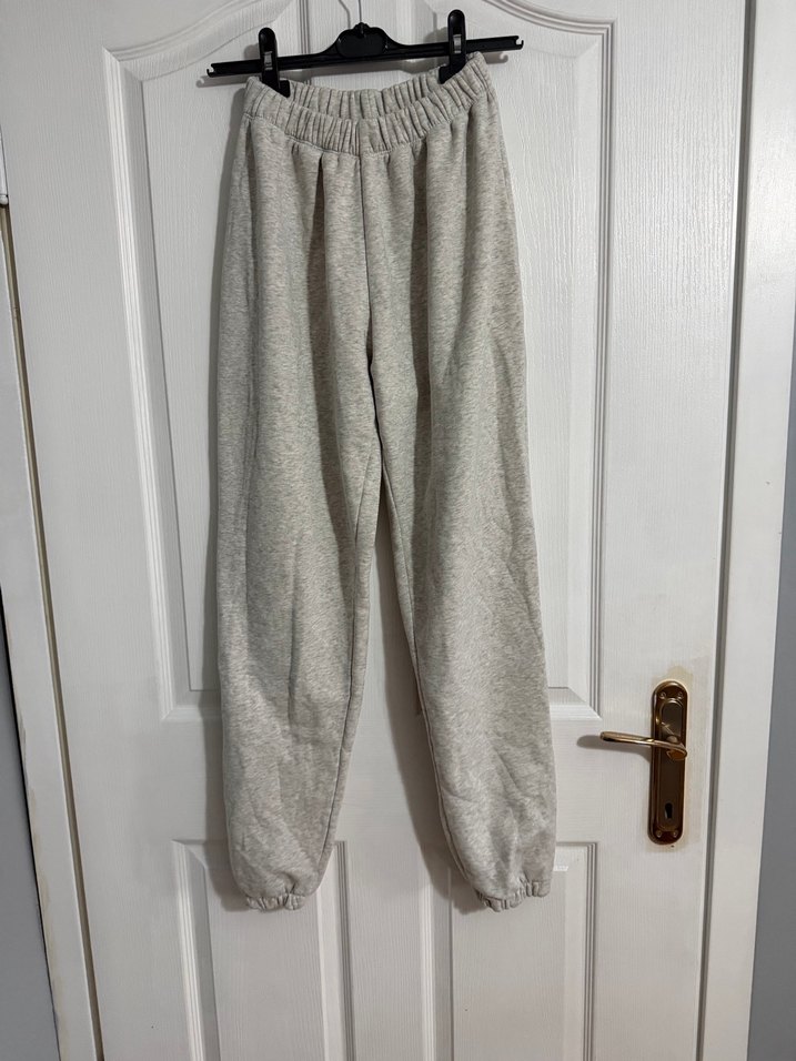 Yumuşak pamuklu kumaştan, bol kesim gri eşofman altı. Lastikli bel ve paçalarla rahat ve şık bir görünüm sunar. Günlük kullanım için uygundur. Ürün boyu uzun olduğu için bir kere giydim hiçbir sorunu tertemiz alana hayırlı olsun