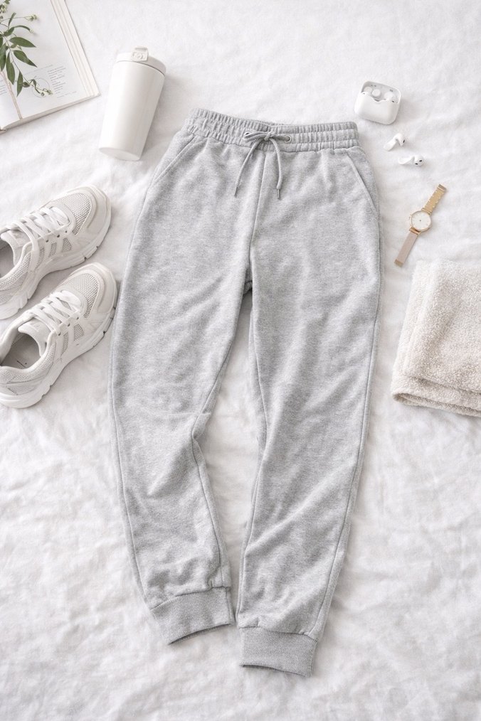 Gri renkli, rahat kesim ve elastik bel ile manşetlere sahip, yumuşak ve sıcak kumaştan yapılmış kadın eşofman altı. Günlük kullanıma uygun, trend rahat stil için ideal.