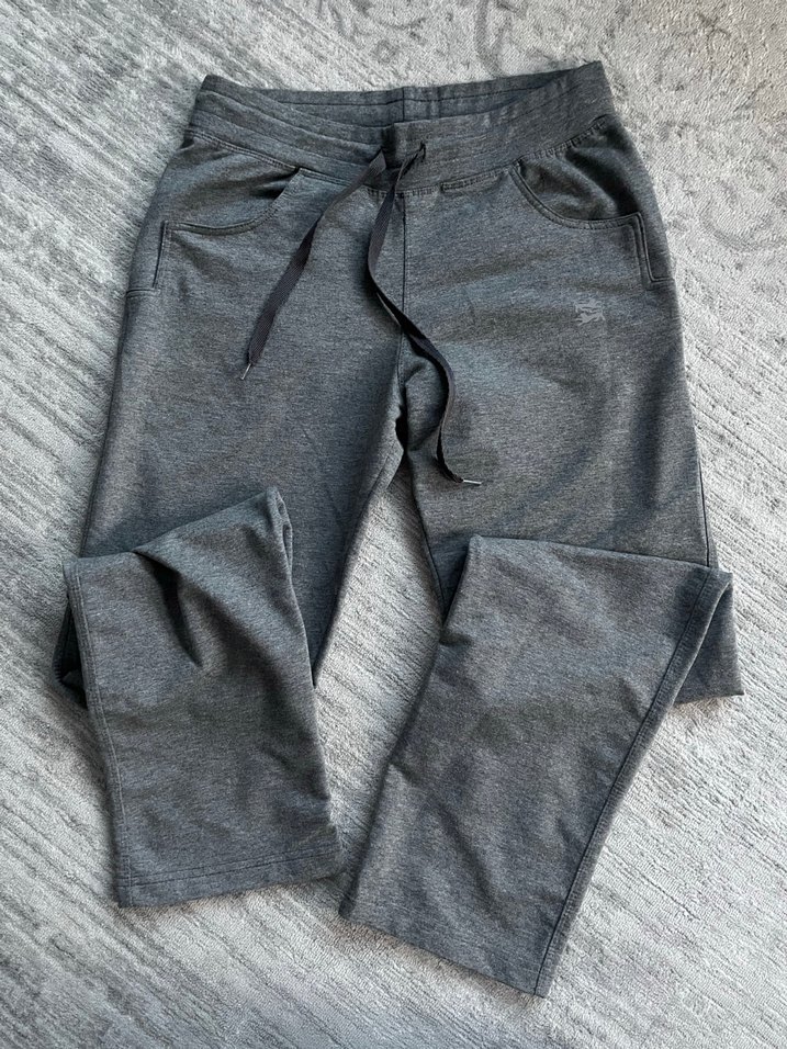 Gri, rahat kesim ve normal boyda kadın eşofman altı, yumuşak sentetik kumaştan günlük kullanım için şık ve konforlu.