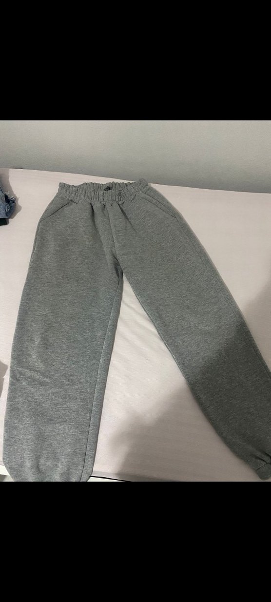Gri eşofman, 3 iplik şardonlu, kalın. Bunu 2 3 kere giydim Rahat kesim ve normal boyda, yumuşak ve sıcak kumaştan kadın eşofman altı. Günlük kullanıma uygun.