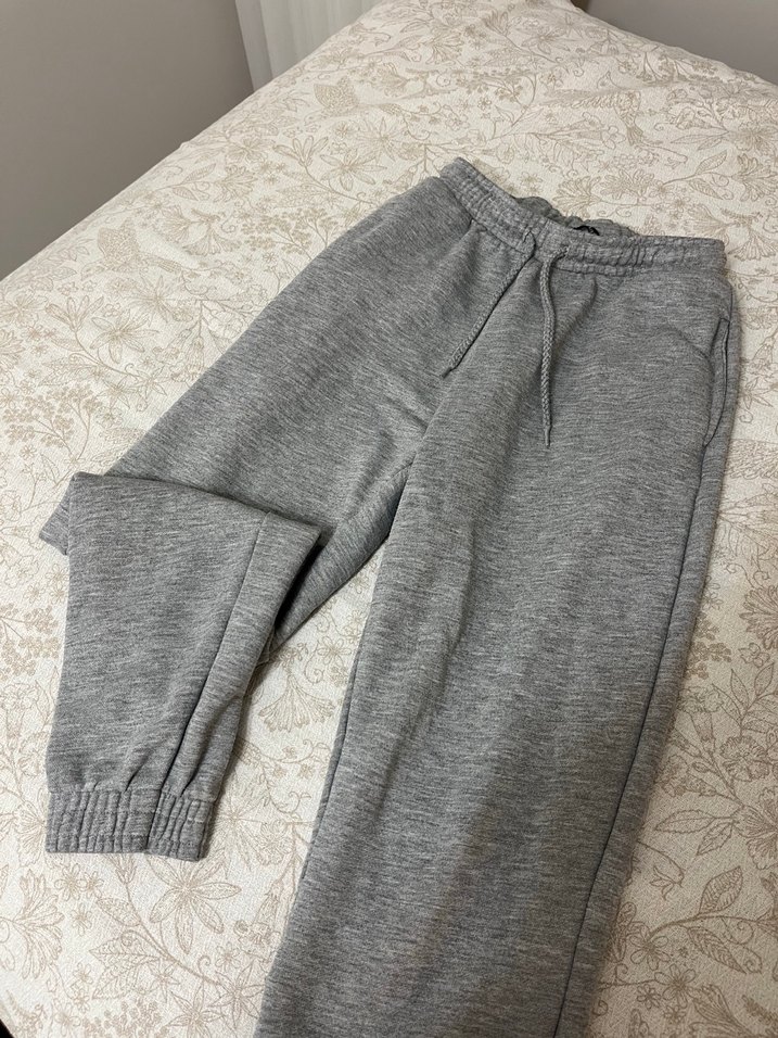 Yumuşak, elastik bel ve paça detaylı gri rahat kesim eşofman altı, günlük konfor için ideal.