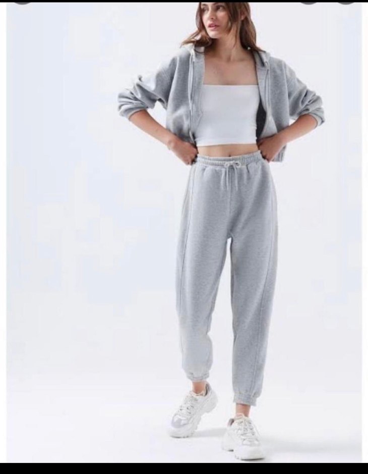 Gri renkli, rahat kesim ve normal boyda, yumuşak ve sıcak kumaştan üretilmiş kadın eşofman altı, gündelik kullanım için zahmetsiz şıklık sunar. ♀️