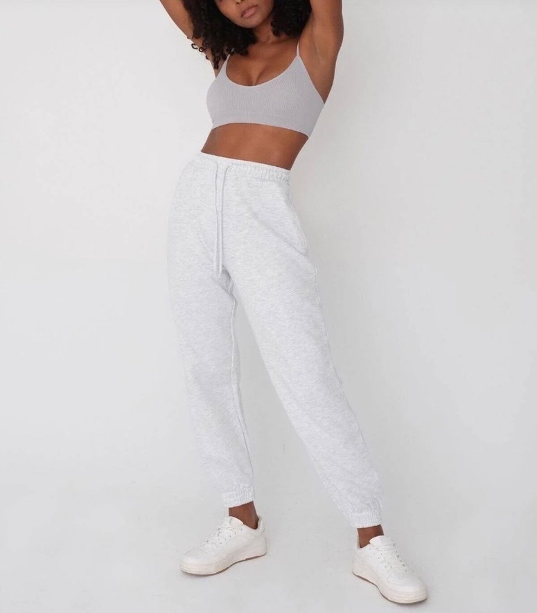 Gri renkte, rahat kesime sahip, yumuşak ve sıcak kumaştan yapılmış normal midi boy kadın eşofman altı.