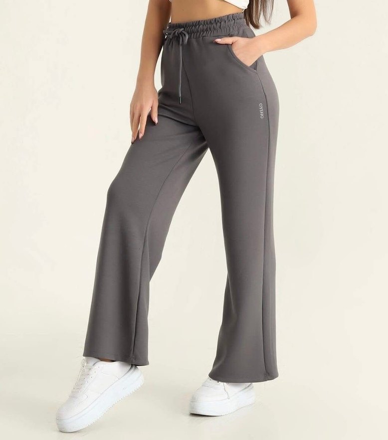 Gri renkte, rahat kesim ve midi boyda, sentetik kumaştan spor ve günlük kullanıma uygun kadın eşofman altı.