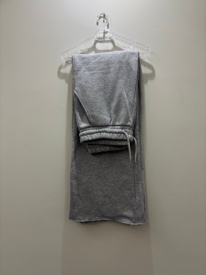 Gri kumaştan, rahat kesim ve detaylı kadın eşofman altı, lastikli ve bağcıklı bel ile günlük kullanım için uygundur.