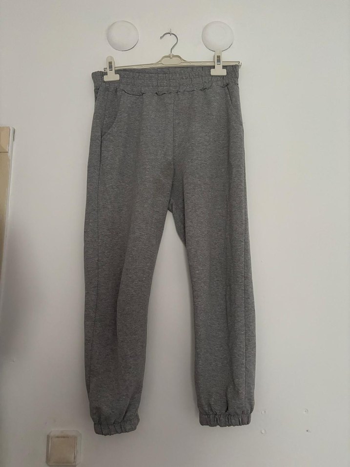 Gri renkte, rahat kesim ve midi boy kadın eşofman altı. Yumuşak keten kumaştan, spor ve günlük şıklık için ideal. ♀️