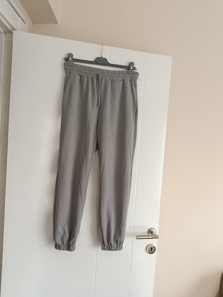 Gri keten kumaştan, rahat kesim midi boy kadın eşofman. Elastik bel ve paça manşetleriyle konforlu, trend casual athleisure tarzda. Günlük kullanıma uygun.