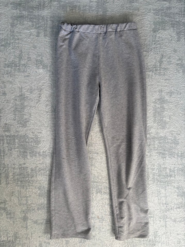 Gri renkte, rahat kesim ve normal midi boyda keten kumaştan kadın eşofman altıdır. Desensiz, normcore tarzıyla günlük ve athleisure kombinlere uygun.