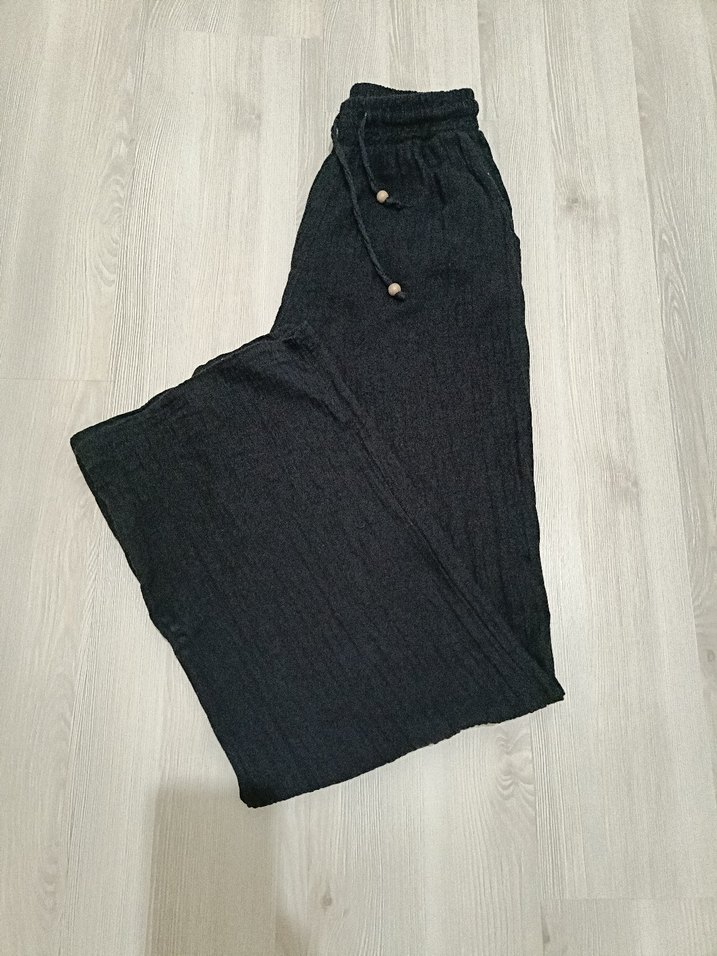 Rahat kesim uzun kadın keten pantolon. Günlük sokak stiline uygun konforlu tasarım. Marka temsilidir.