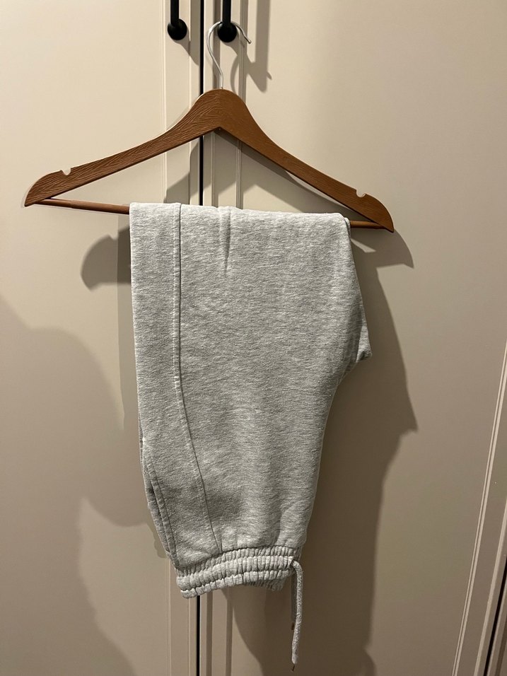 Gri, rahat kesim kadın pamuklu eşofman, yumuşak kumaştan, gündelik kullanıma uygun, orta boy ve desensiz tasarıma sahip, zahmetsiz şıklık sunar.