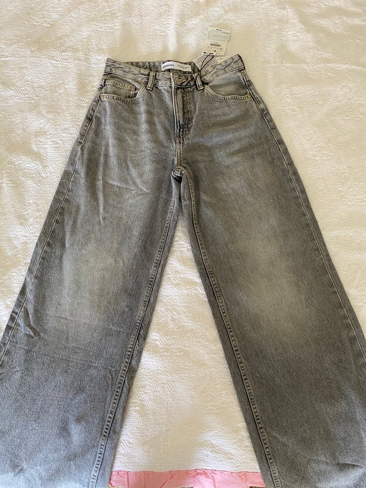 Gri Rahat Kesim Kadın Wide Leg Kot Pantolon