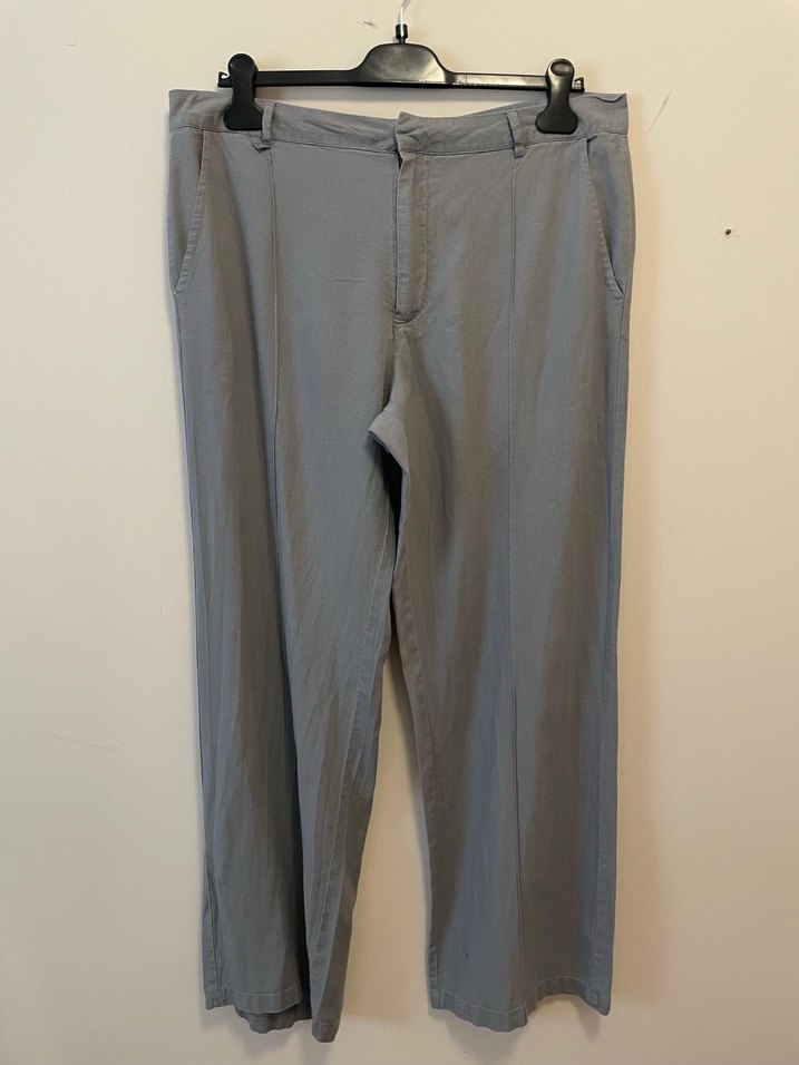 Gri Rahat Kesim Keten Kadın Pantolon