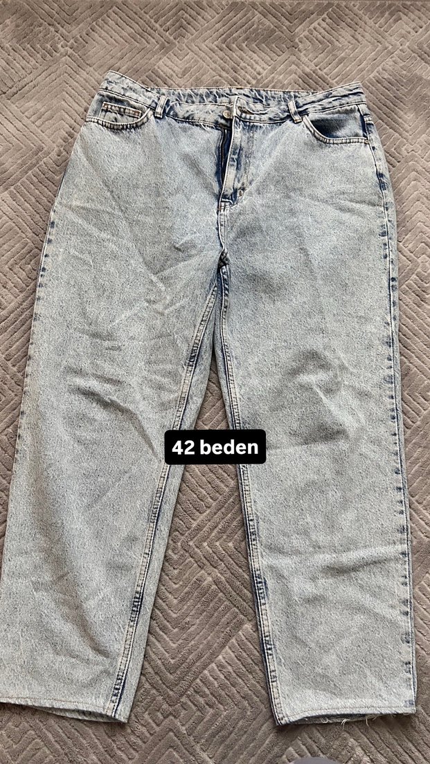 Gri renkli, düğmeli, rahat kesim denim kot pantolon, günlük sokak stili için uygundur. 42 beden.
