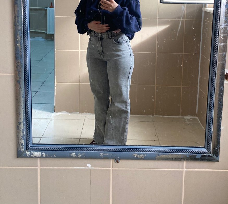 Gri renkli, rahat kesim ve midi boy kot pantolon, normcore tarzıyla günlük kullanıma uygun, zahmetsiz şıklık sunar.