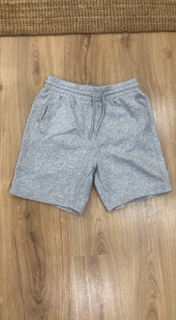 Gri renkli, rahat kesim şort, yumuşak kumaştan üretilmiş, elastik bel ve yan ceplidir. Sokak stili için uygundur.