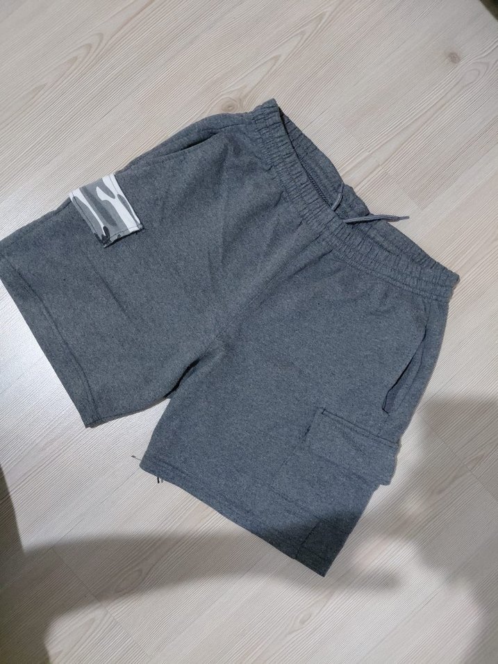 Gri renkli, rahat kesimli ve yumuşak dokulu şortlar. Yan cepler ve ayarlanabilir bel lastiği bulunur.