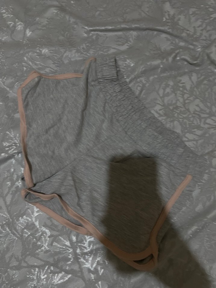 Gri renkte, bol kesim ve kısa boyda, elastik bel bantlı hamile eşofman altı. Yumuşak sentetik kumaştan, günlük rahat sokak stili için uygundur.