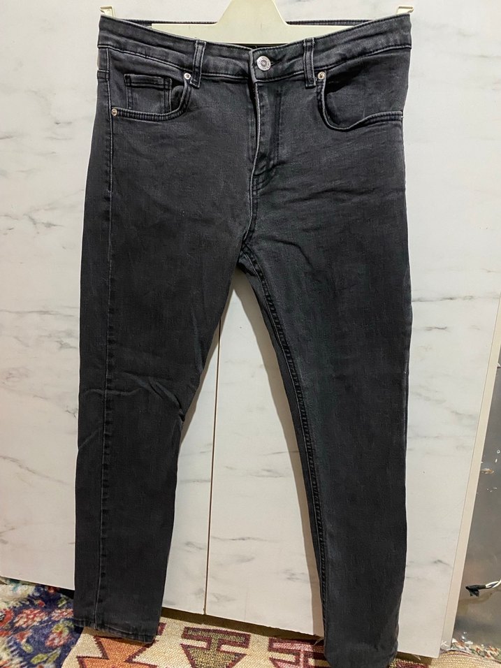 Gri kot pantolon. Desensiz tasarımıyla günlük kullanıma uygun, trend sokak stiline uyum sağlar.