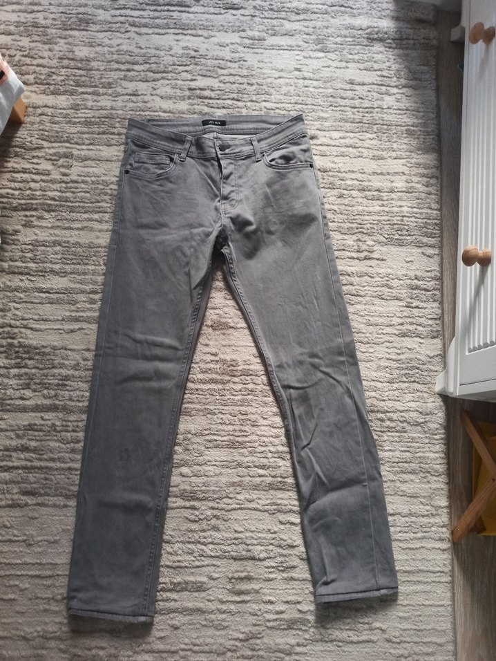 Gri regular fit denim erkek pantolon, sokak stili ve rahat, zahmetsiz şıklık sunar, günlük kullanım için uygundur. 3-4 Defa anca giyildi.