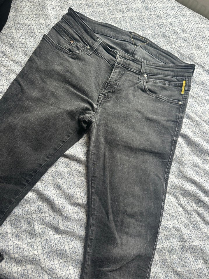 Gri renkli denim erkek pantolon, regular fit ve midi boyda. Desensiz tasarımıyla günlük kullanıma uygun, zahmetsiz şıklık sunar. Orijinal yurt dışından alındı bu marka uygulamada yok, kusuru yok.