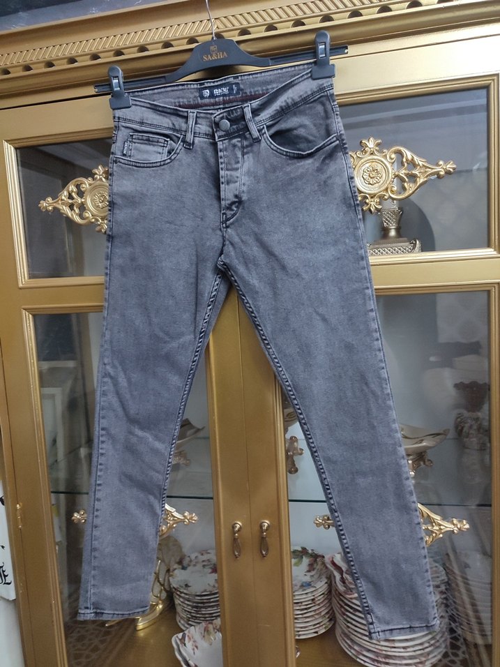 Gri renkli, regular fit kesime sahip denim jean. Düğmeli ve hafif batik desenli, günlük kullanıma uygun rahat model.