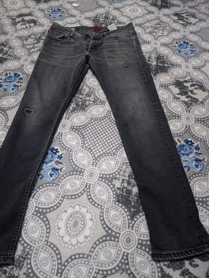 Gri tie-dye desenli, bağcıklı detaylara sahip erkek regular fit denim jean, günlük kullanım için uygundur. Jack jones