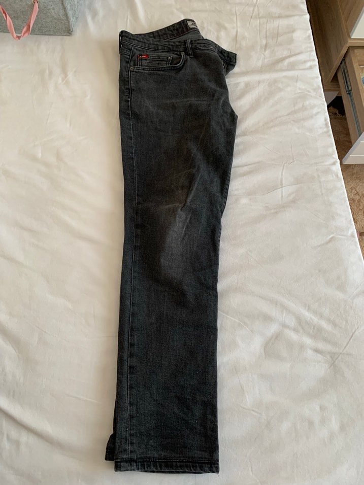Gri renkte, regular fit ve normal boyda denim kumaştan erkek pantolon. Desensiz tasarımıyla günlük kullanıma uygun, rahat ve şık bir seçenek.