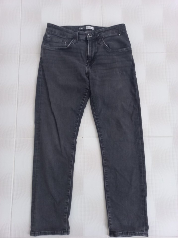 Gri renkli, normal boy ve regular fit kesime sahip erkek denim pantolon. Rahat ve şık, günlük kullanım için uygun