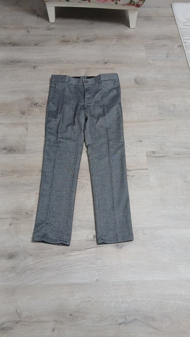 Gri, regular fit erkek denim pantolon, düğmeli ön kısmı ile ofis ve günlük sokak stiline uygundur. Midi boy ve desensiz tasarım. ENİ 40 CM BOYU 94 CM