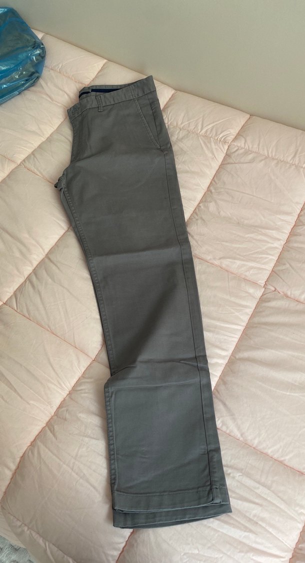 Bu gri erkek pantolonları, kemerli ve regular fit olup, sentetik kumaştan yapılmıştır. Normal midi boyda, günlük sokak stili için uygundur. 32/29 beden
