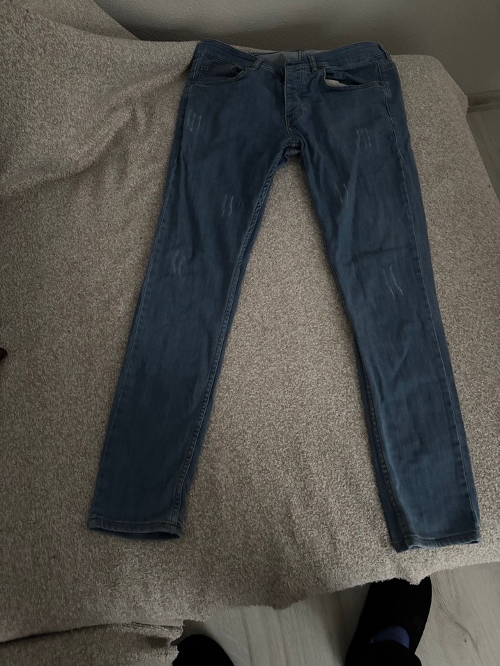 Gri renk, regular fit ve normal boy kot pantolon. Kot kumaştan üretilmiş, kemerli ve gündelik sokak stili için uygun.