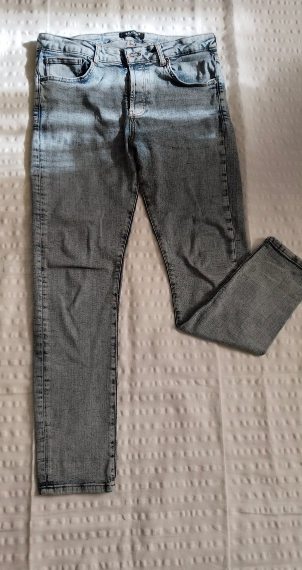 Gri renkte, regular fit ve normal boyda erkek kot pantolon. Düğmeli ve desensiz tasarımıyla günlük sokak stiline uygundur.
