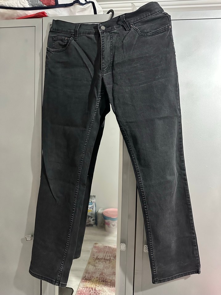 Gri renkte, normal boy ve regular fit kesime sahip, kemerli erkek kot pantolon. Günlük sokak stili için uygun, dayanıklı denim kumaştan yapılmıştır. 46 bedendir hiç kullanılmamıştır hasarsız sıfır temizdir