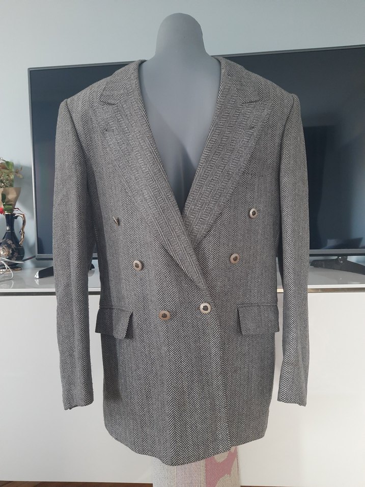 Gri renkte, kruvaze düğmeli, regular fit kesime sahip erkek ceket. Uzun kollu, klasik ve şık tasarımıyla iş ve günlük kullanıma uygun.yünlü gibi kaşe kumaşa sahiptir.iki kol arası 54cm,ceket boyu 78cmdir,marka temsilidir.