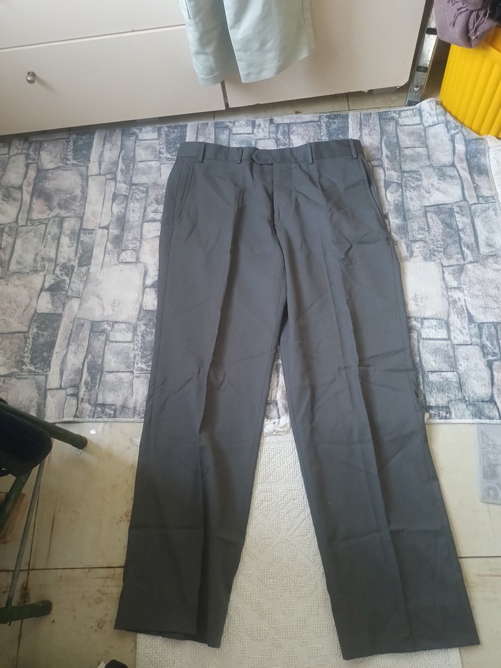 Gri renkte, regular fit ve normal boyda erkek pantolonu. Sentetik kumaştan üretilmiş ve kemer detayına sahip. Ofis ve günlük sokak tarzına uygun.