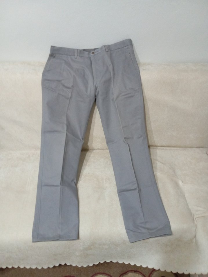 Gri renk regular fit, midi boy erkek pantolon. Düz, desen içermeyen, sentetik kumaştan ofis ve günlük kullanıma uygun rahat model. 52 beden L/XL diyenlere uygun. bel 48 cm.boy 100 cm.