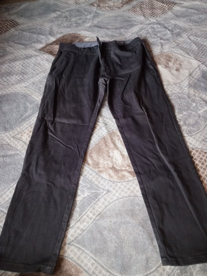 Gri renkte, regular fit ve normal boyda erkek pantolonu. Sentetik kumaştan üretilmiş, kemerli ve günlük sokak stiline uygun.