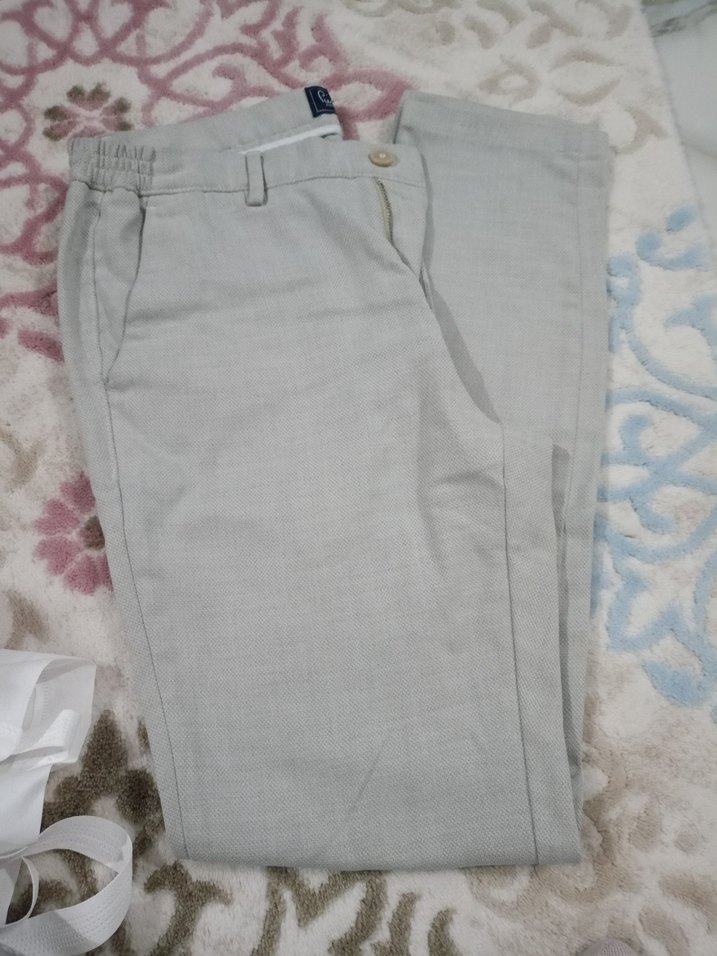 Gri renkte, düğmeli, sentetik kumaştan yapılmış regular fit erkek pantolon. Günlük rahat sokak stili için uygundur.