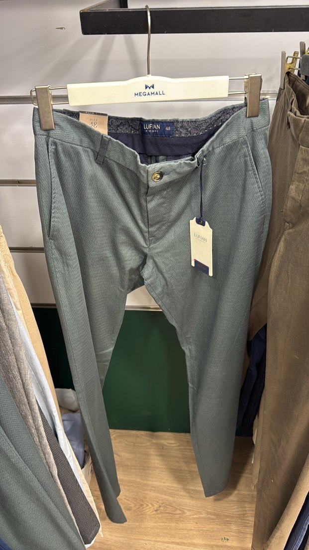 Düğmeli, regular fit gri erkek pantolon, ofis ve sokak tarzına uygun, yumuşak sentetik kumaştan üretilmiştir.