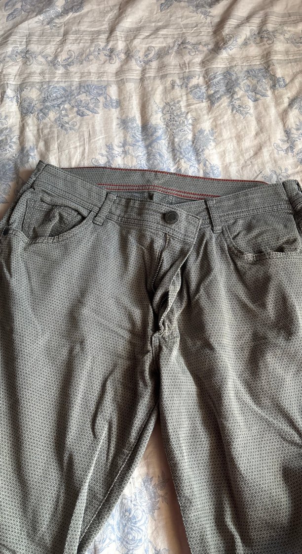 Gri renkte, regular fit, düğmeli erkek pantolon. Sentetik kumaştan, günlük rahat sokak stili için uygundur. Normal boyda ve desensizdir.
