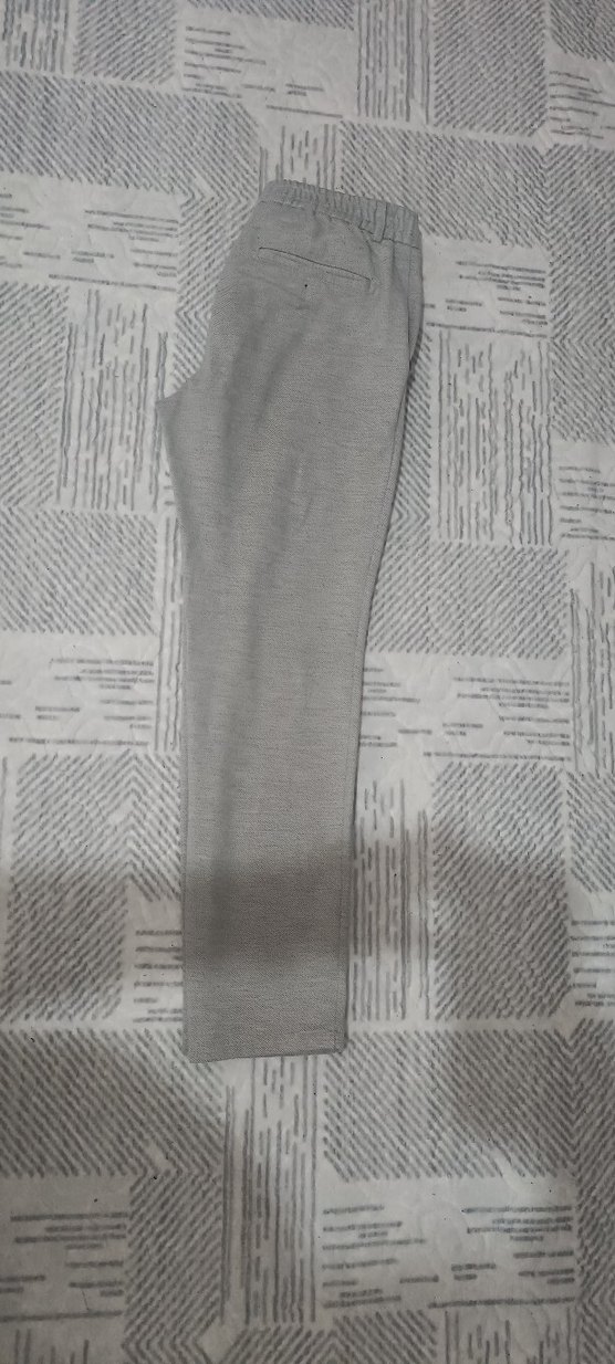 Gri renkte, regular fit ve midi boyda, sentetik kumaştan yapılmış erkek pantolonu. Pilili detaylarıyla günlük sokak stili için uygundur.