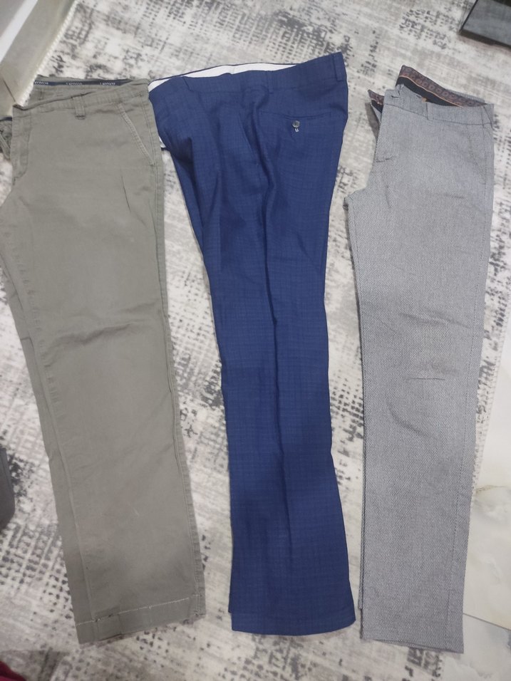 Gri renkte, kemerli ve regular fit erkek pantolon. Düz desenli ve sentetik kumaştan, günlük rahat kullanıma uygun. hepsinin fiyatıdır. tiftik model pantolonun sol cebinde hafif sararma var çizgi şeklinde gibi düşünün ama hiç belli bile olmuyor.. Çiftlik pantolon bel 42 santim mezura ile ölçümde. Lacoste pantolon 43 santim mezura ile ölçümde lacivert pantolon 44 santim mezure ile ölçümde bel o şekilde ölçüler ve boy olculeri lacoste93 cm lacivert 99cm tiftik model 96 cm iade yook.hepsi giyilcek durumda yenidir