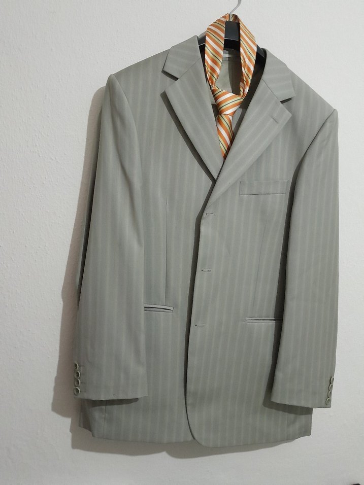 Gri renkli, regular fit erkek takım elbise. Notch yaka, düğmeli ve desen içermeyen klasik tasarıma sahiptir. Ofis ortamı için uygundur.
