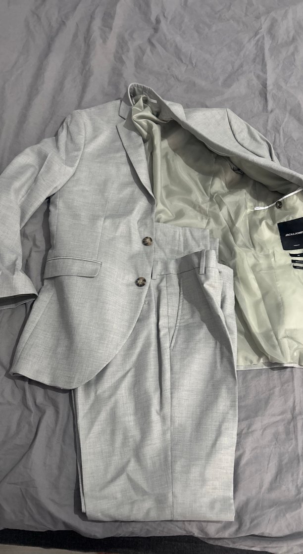 Gri renkli, regular fit erkek takım elbise, düğmeli ve klasik yaka detaylıdır. Uzun kollu ve midi boyda olup, iş ve sokak stiline uygundur. Desensiz ve şık bir tasarıma sahiptir.