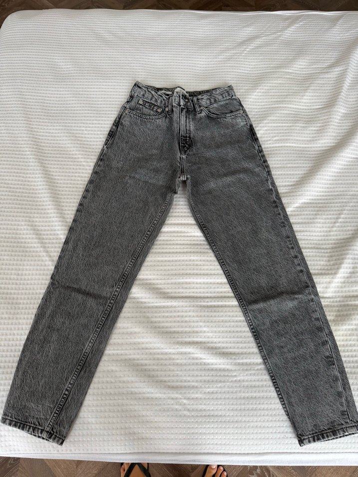 Gri renkte, regular fit kesime ve normal boyda denim pantolon. Günlük kullanım için rahat ve şık bir sokak stili sunar. Defosu yok