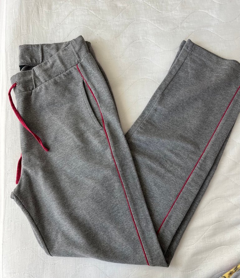 Gri, regular fit kadın eşofman altı pembe şerit detaylı. Defosu yoktur.