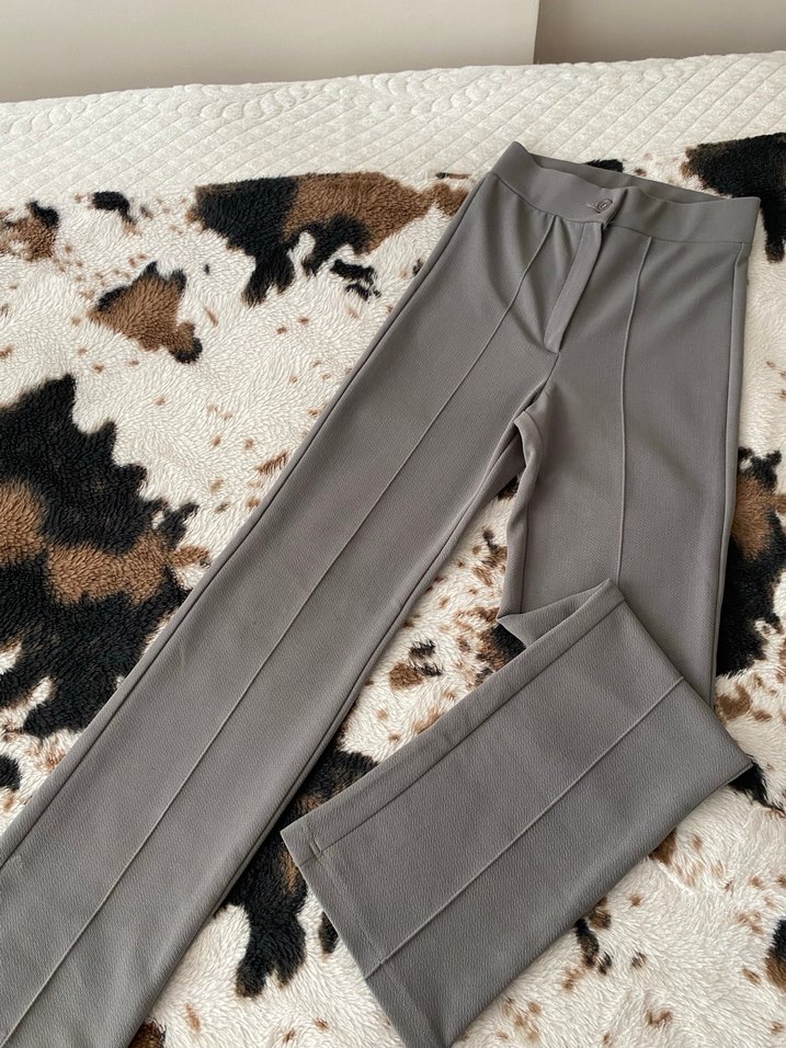 Gri renkte, regular fit, midi boy, kadın kumaş pantolon. Düz desensiz, sentetik kumaştan, günlük kullanıma uygun rahat ve şık bir tasarım. 36 beden ama bel kısmı vs küçük bedenlere de rahatlıkla olur