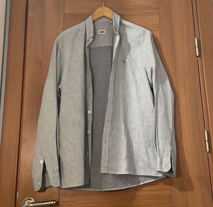 Gri renkli, keten kumaştan yapılmış, regular fit ve uzun kollu erkek gömleği. Düğmeli önü ve yakası notched lapel tarzındadır. Günlük rahat kullanıma uygundur.